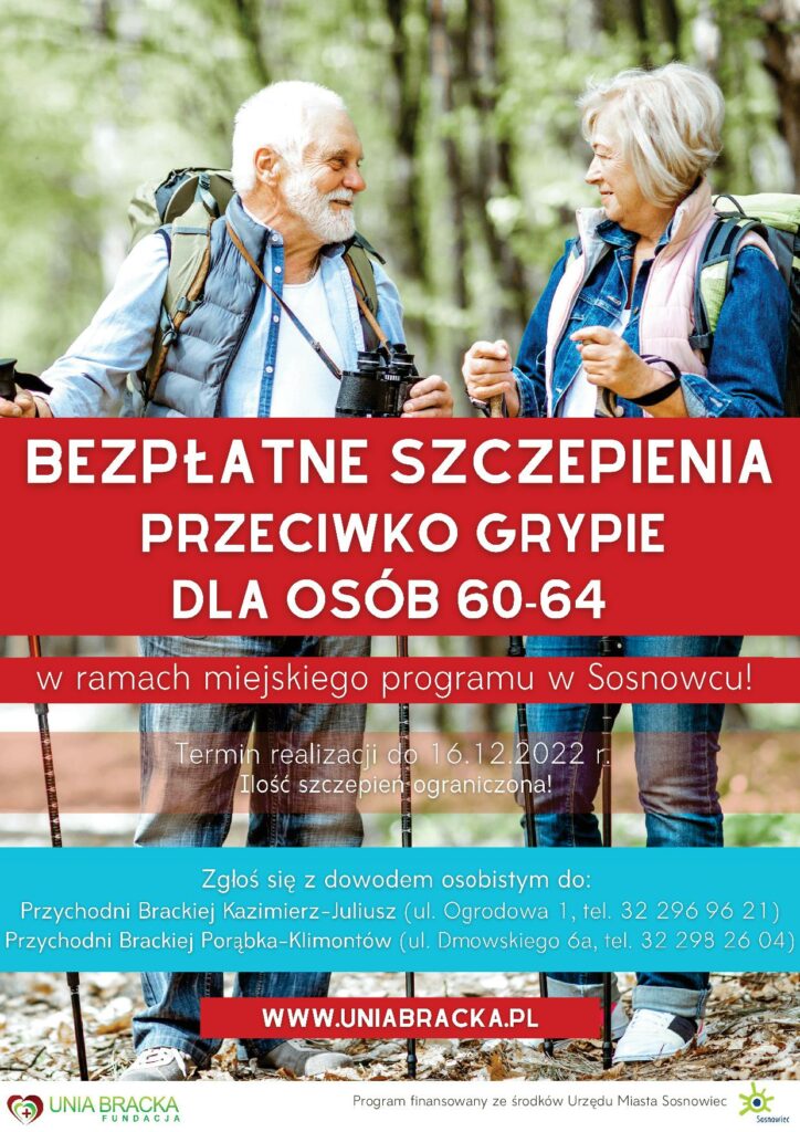 Jeśli macie od 60 do 64 lat i mieszkacie na terenie Sosnowca zapraszamy do naszych Przychodni Brackich, w których w ramach finansowanego przez Urząd Miasta Sosnowiec programu zdrowotnego możecie bezpłatnie skorzystać ze szczepienia przeciwko grypie. Właśnie rozpoczynamy realizację programu i czekamy na Was codziennie w dni robocze od poniedziałku do piątku w naszych przychodniach! Planowany termin zakończenia programu to 16 grudnia więc nie czekajcie i zaszczepcie się już dziś!