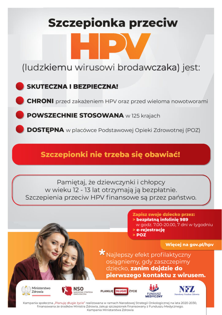 Bezpłatne szczepienia przeciwko HPV dla dzieci w wieku 12 i 13 lat w naszych poradniach POZ