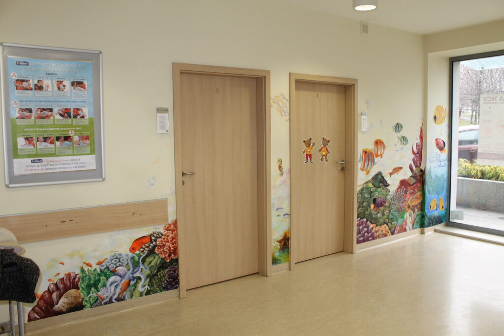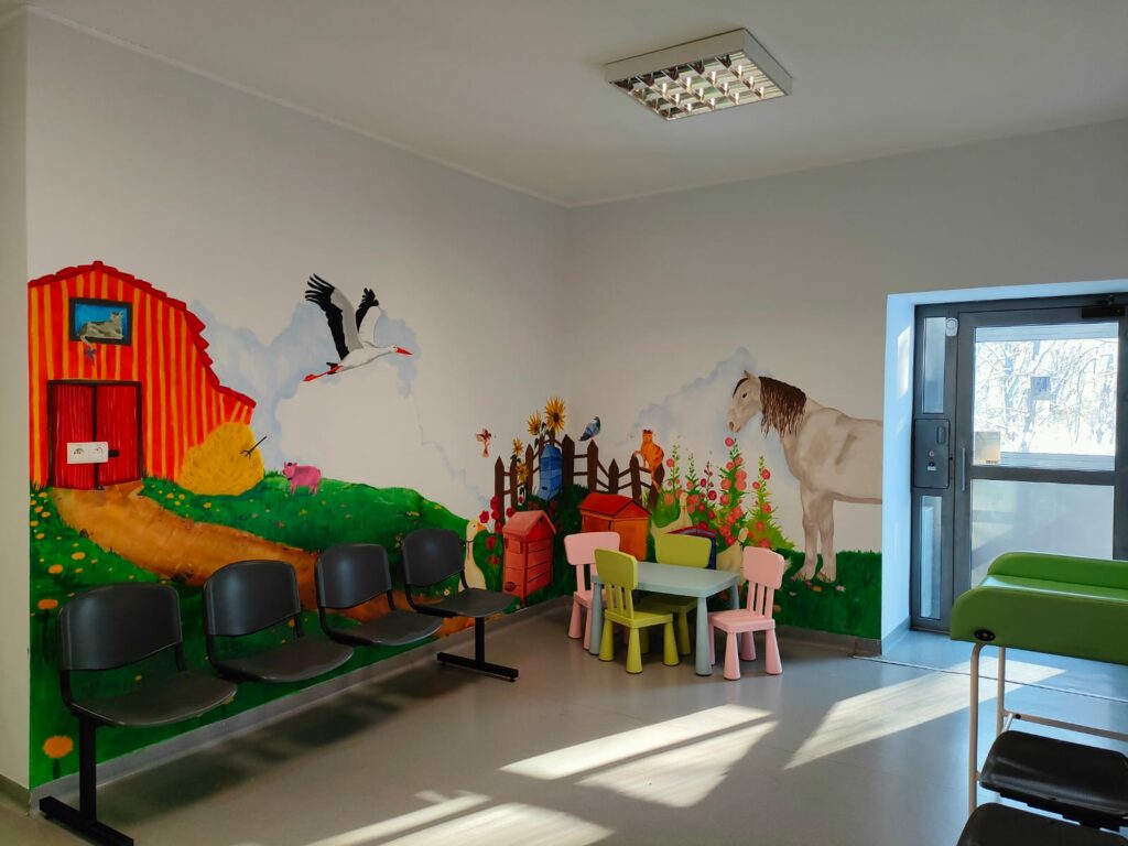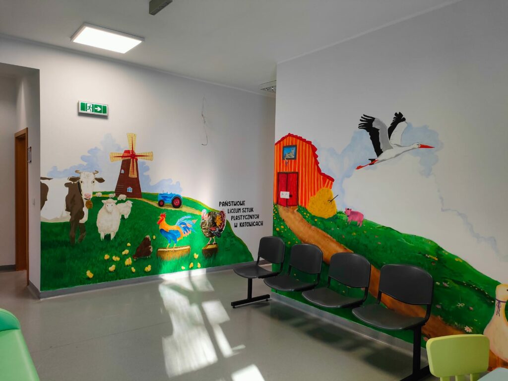 Poradnia dla dzieci w Przychodni Brackiej Wesoła w Mysłowicach, dzięki pracy zdolnych licealistek z Państwowego Liceum Plastycznego w Katowicach, zyskała nowy wygląd. Wnętrze poradni zamieniło się w sielską wieś, która nie tylko uspokaja młodych pacjentów, ale również wspomaga ich rozwój. Od teraz, czekając na wizytę, rodzice mogą spędzić czas z najmłodszymi, ucząc lub opowiadając o wiejskiej faunie i florze. Być może pobyt w naszej przychodni będzie doskonałą okazją do napisania wstępu dłuższego opowiadania…